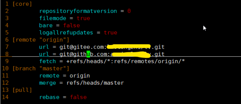 Linux执行:sudo vim .git/config