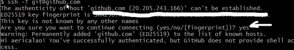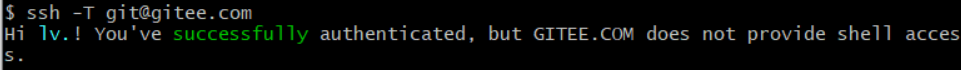输入ssh -T git@github.com,测试是否已经完成了ssh公钥添加,