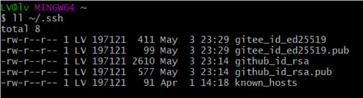 打开git bash,输入:ll ~/.ssh,查看已经生成的 ssh-key