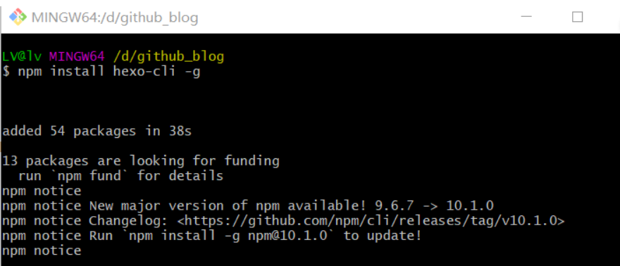 npm install hexo-cli -g,安装成功如图所示