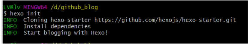 hexo inti,出现如图,说明初始化成功,hexo 可以正常使用