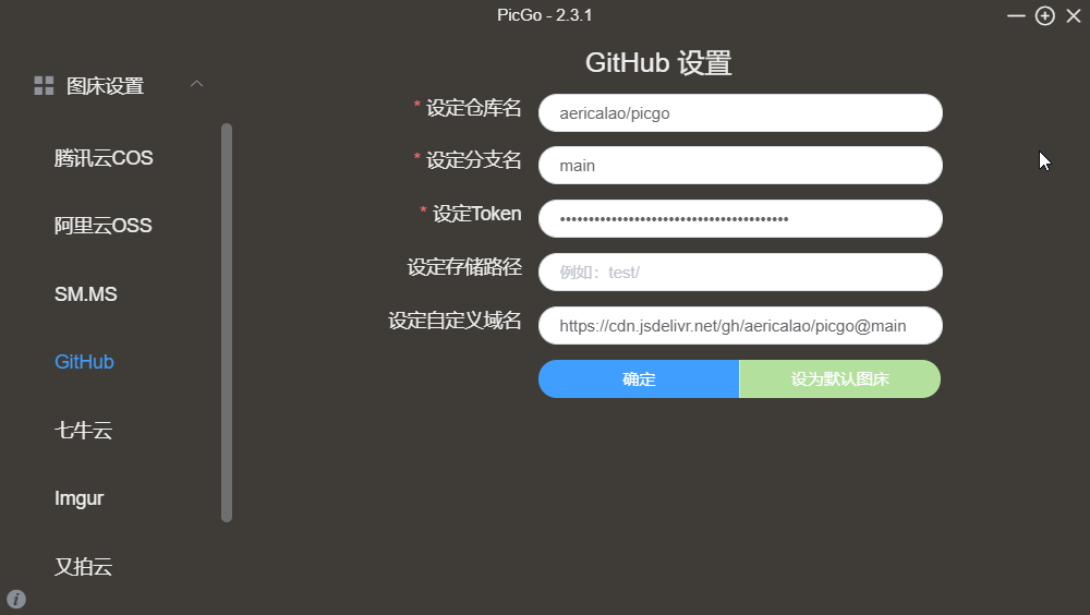 如我的就是:https://cdn.jsdelivr.net/gh/aericalao/picgo@main