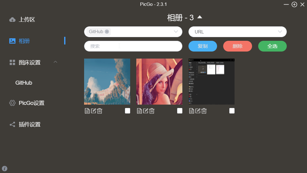 现在就可以尝试上传图片,选择上传区和下面的 url,随便选一个图片上传进行测试