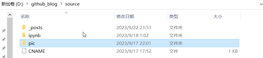 1.不知道在 blog 文件夹中的哪里创建文件夹用于存储图片比较好,所以就在 blog 文件夹下的 source文件夹 中创建了一个用于存储所有图片的文件夹 pic。但是图片不能像在j upyter 中一样直接 ctrl+v 就可以万事大吉。而且图片只会在写文章时显示(因为使用的绝对路径),在网站中就不显示。