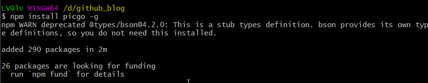 1.打开 cmd 或者 gitbash,全局安装 picgo,执行 npm install picgo -g
