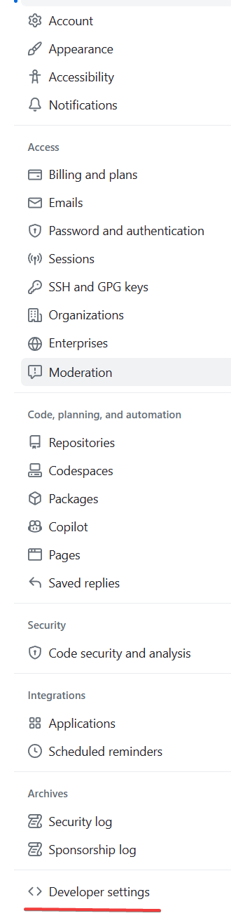 3.左边侧边栏最下面,选择 Developer settings