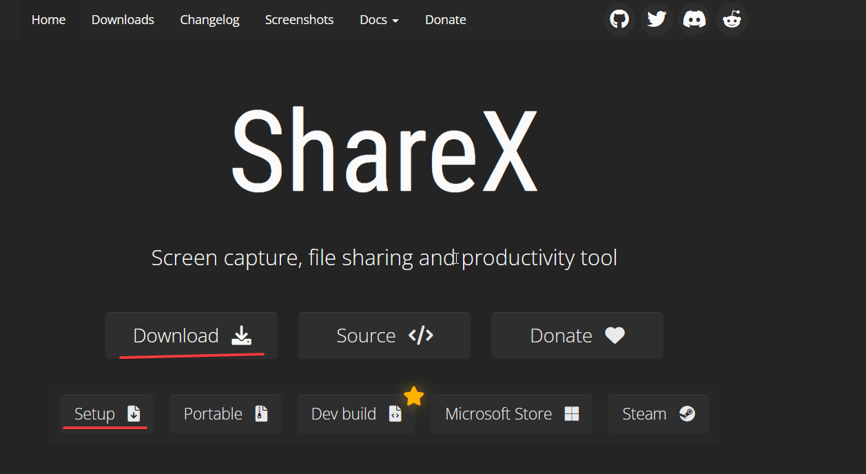 1.进入 sharex官网,点击 download ,点击 Setup 等待下载
